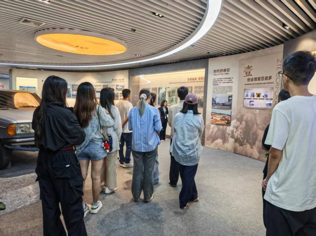 在讲解员的带领下,同学们首先步入了中兴通讯博物馆。展厅内,一辆搭载着早期车载移动电话的复古奔驰轿车勾起了大家对1G 时代的无限好奇。